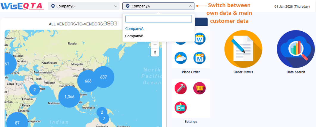 Sub customers have a 2nd dropdown at the top of WisE screen.